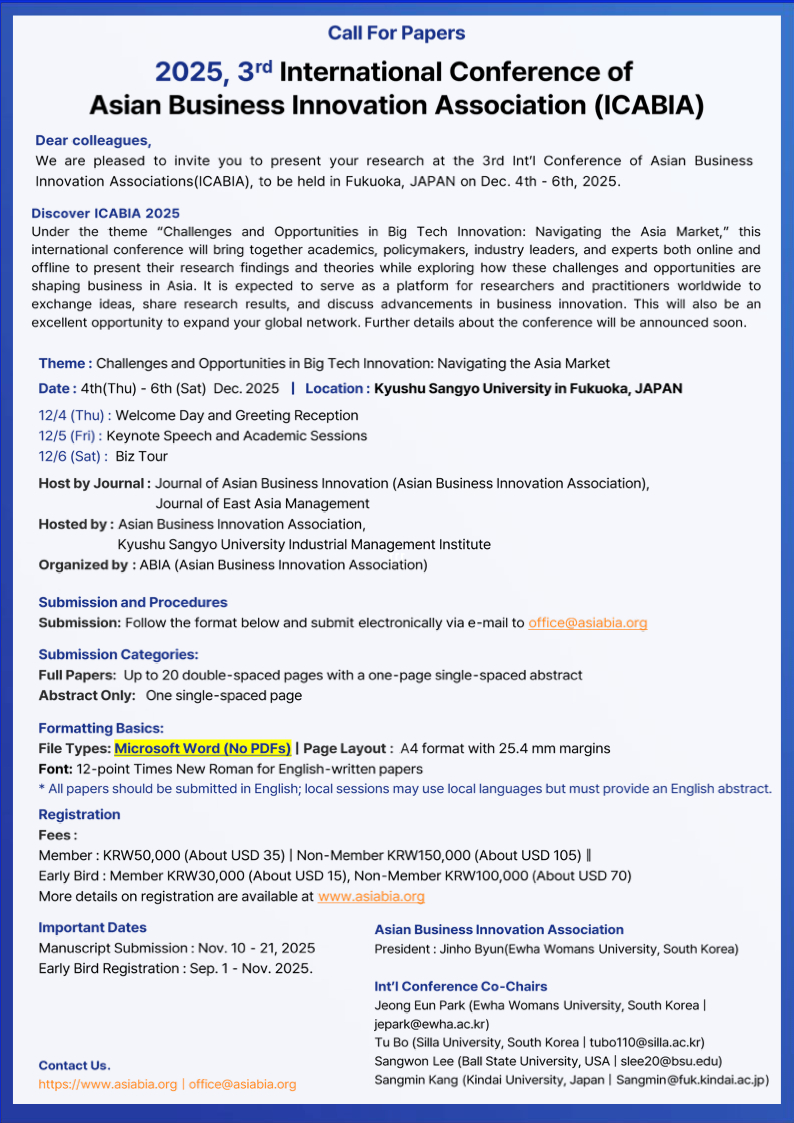 주 최 저 널: Journal of Asian Business Innovation(Asian Business Innovation Association),
